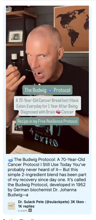 DISCLAIMER: This content is for educational purposes only. Always speak to your provider before beginning new nutritional therapies. #DrPeteSulack #BudwigProtocol #AntiCancerFoods #FunctionalMedicine #Healing